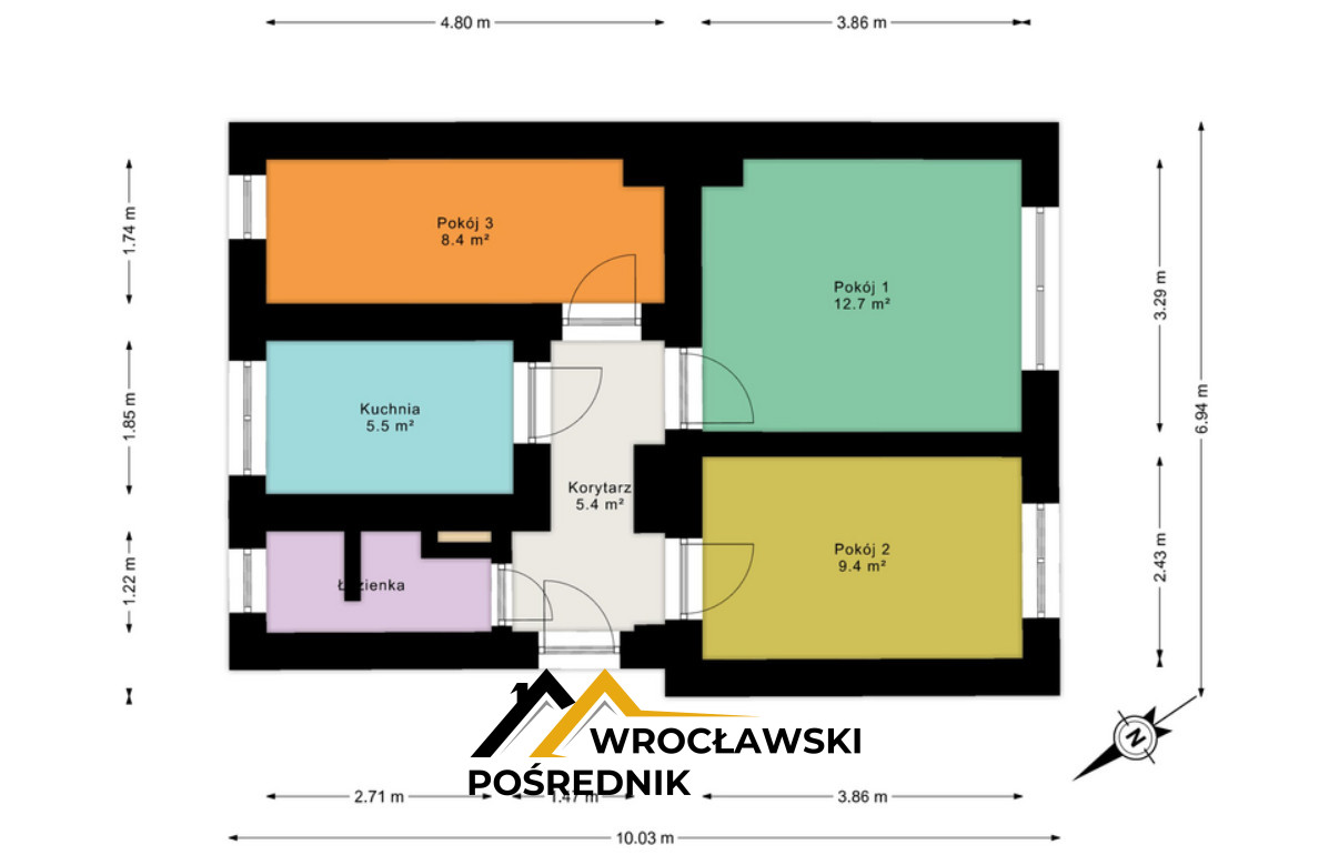 To jedna z najciekawszych ofert w tej części Wrocławia – małe mieszkania 2-pokojowe osiągają podobne ceny, a tu dostajesz aż 3 pokoje w świetnym układzie.